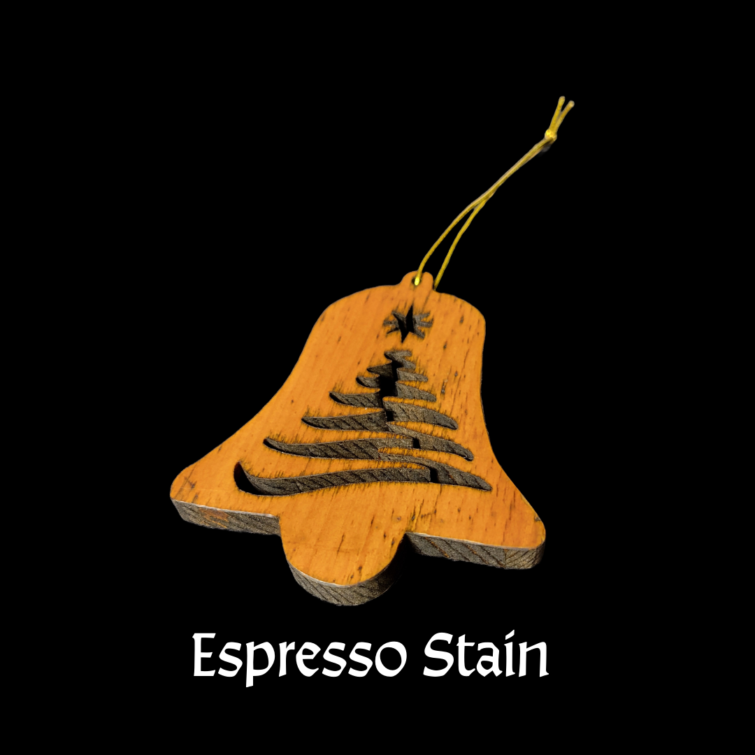 This adorable christmas tree bell ornament was hand crafted and cut out on a scrollsaw. Ornaments are cut out individually so minor variations may occur.