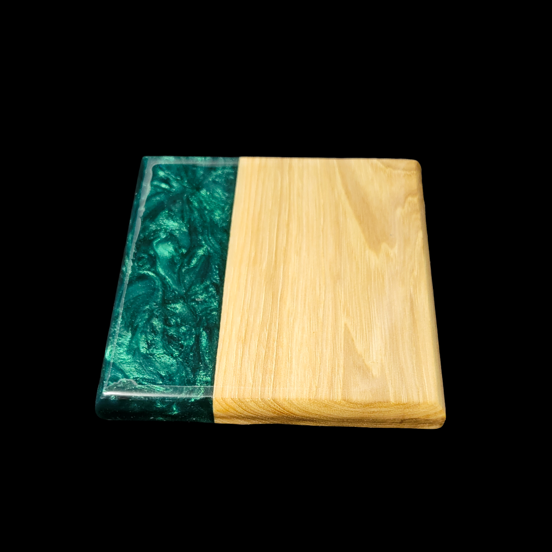 Coffee coaster made out of reclaimed barn wood and epoxy resin featuring emerald green pigment swirled together to reflect the forest. Each piece of wood has been carefully selected to showcase the character and unique woodgrains. Imagine taking a morning walk through the trees and enjoying an tranquil cup of coffee afterwards. The perfect gift for any seasonal enthusiast or minamilist!